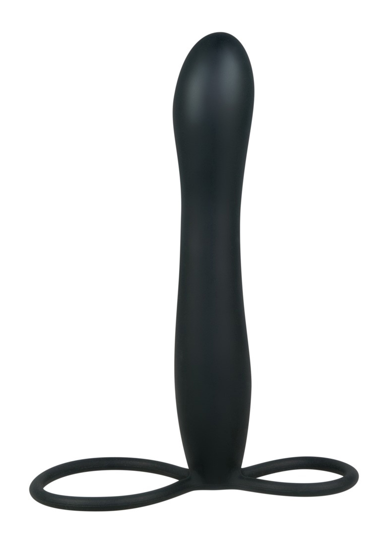 Analna przyjemność ułatwiona!Czarne analdo dildo z dwoma pętlami do jednoczesnego mocowania do penisa i jąder