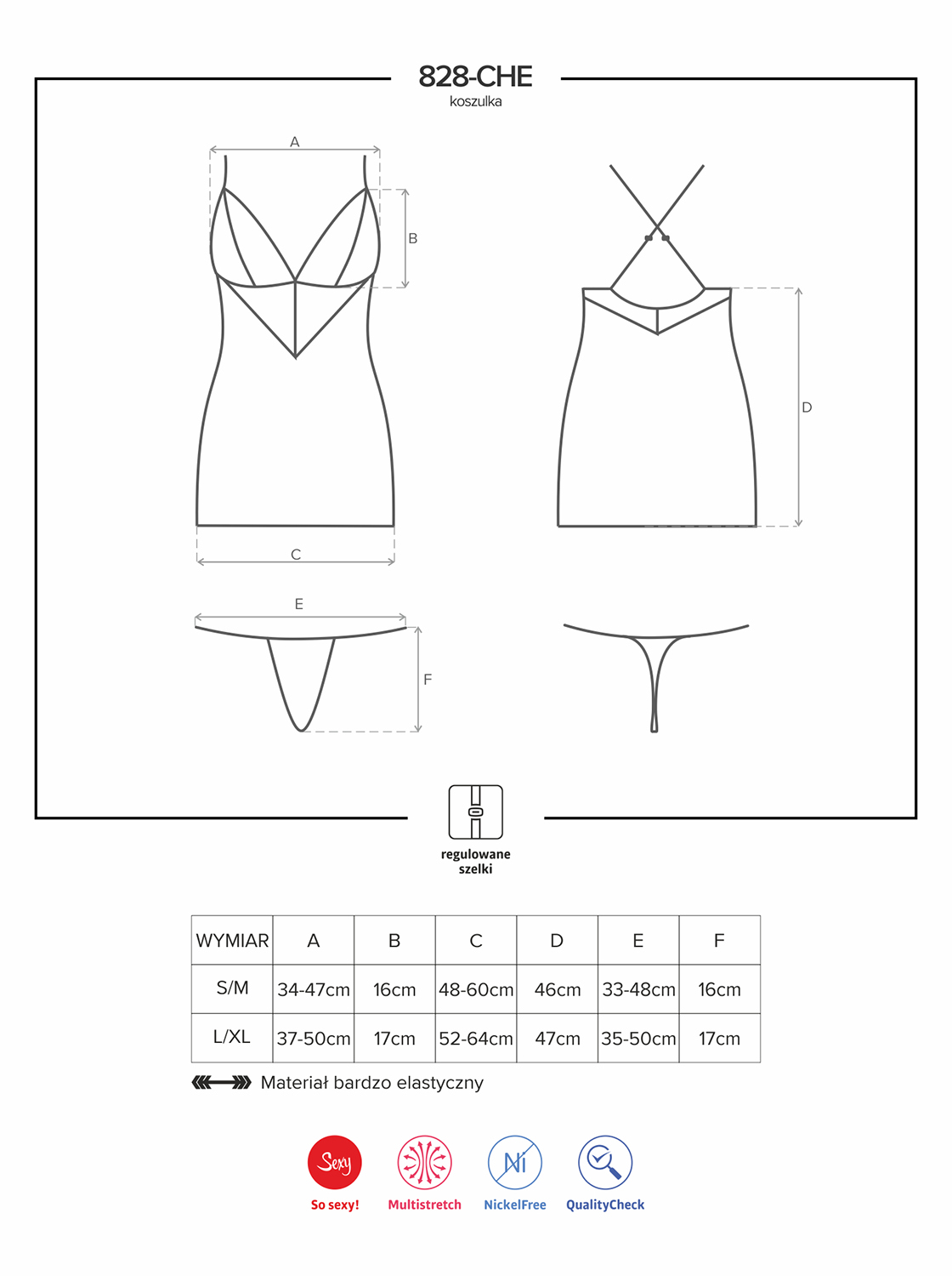 Bielizna 828 CHE 1 koszulka i stringi S/M
