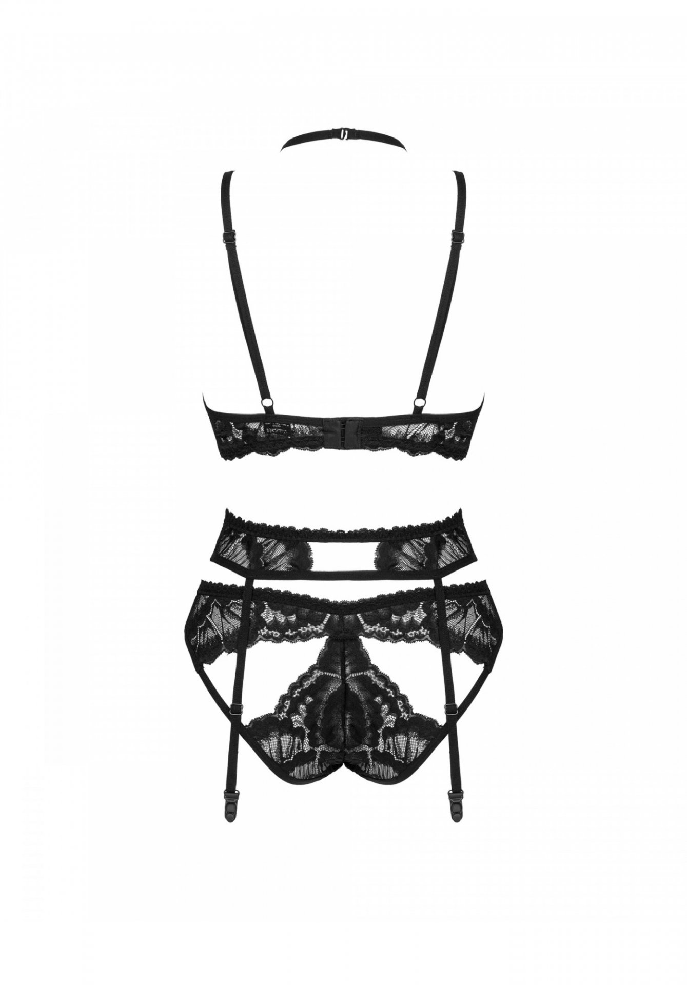 – trzyczęściowy komplet Alessya: biustonosz, pas do pończoch, figi