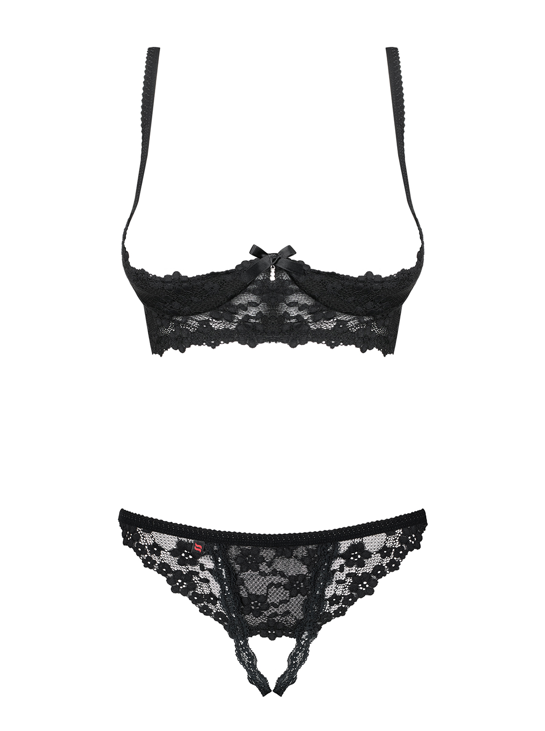 – zestaw zawiera: biustonosz z otwartymi miseczkami i stringi z otwartym krokiem
