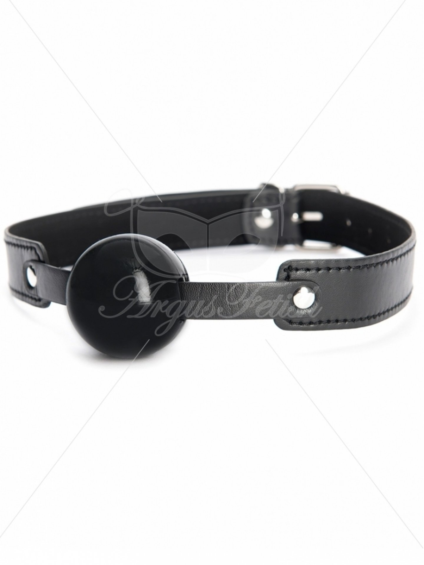 Czarny knebel kulkowy wykonany z wolnego od ftalanów PVC i bezniklowego zapięcia