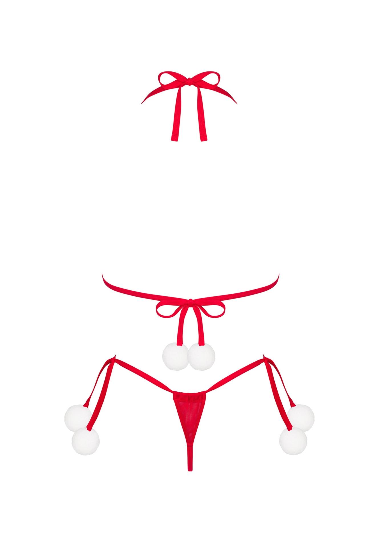 Poznaj więcej szczegółów:- komplet składający się z biustonosza i stringów w czerwonym kolorze- zabawne pompony – oryginalny dodatek- wiązanie na szyi i na plecach – doskonałe dopasowanie- błyszcząca zawieszka – łapie spojrzenie – miękki materiał – komfort i wygoda (94% poliamid, 6% elastan)