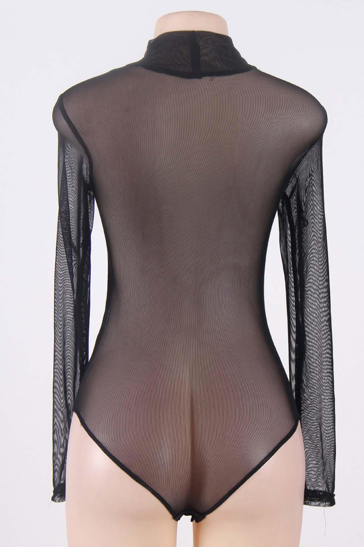 From your Paris Hollywood supplier , this black bodysuit has long sleeves and a crew neck finish , which makes it very chic