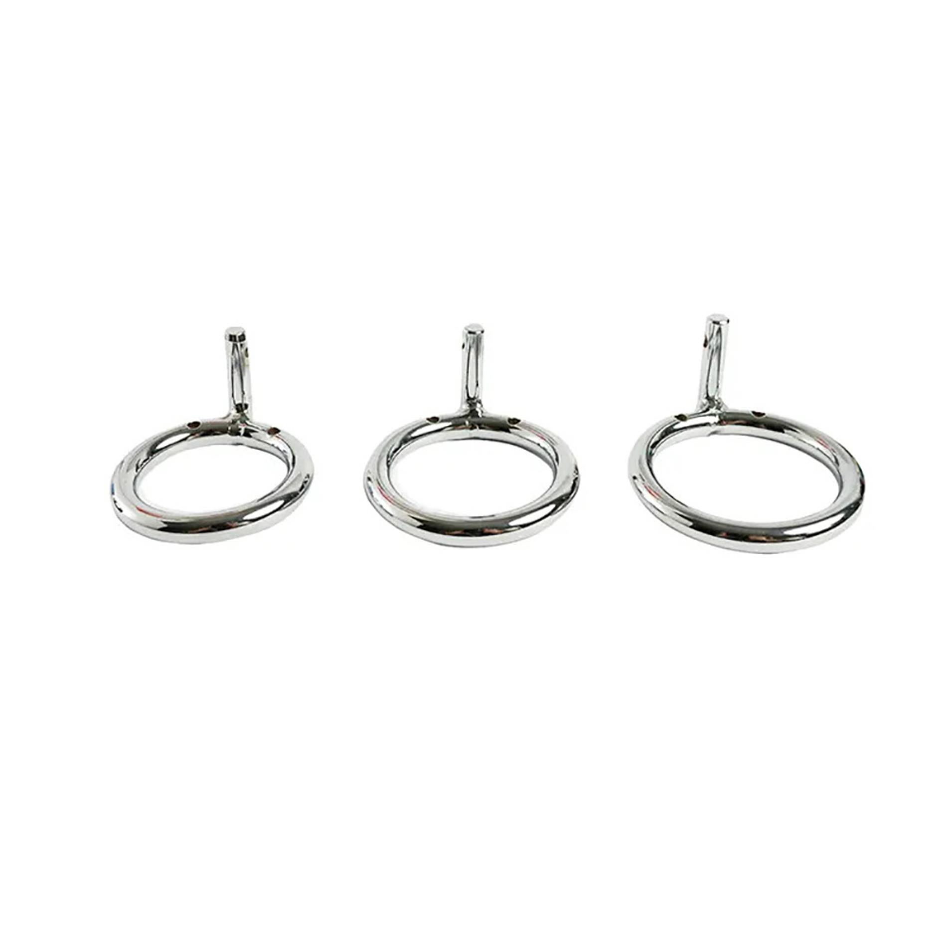 W zestawie znajduje się zamek, 2 klucze oraz 3 metalowe pierścienie w różnych rozmiarach.