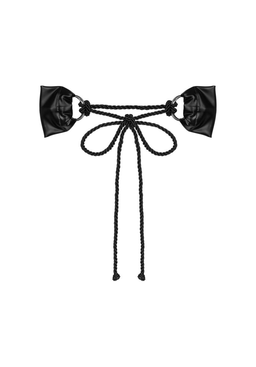 Poznaj więcej szczegółów:- kajdanki z wiązaniami- mocny sznurek o wyraźnym splocie – rozbudzi fantazję- błyszczący materiał – rzuca się w oczy- wiele sposobów wiązania – znajdź swój ulubiony- elastyczny materiał – zadba o Twój komfort (zewnętrzna warstwa materiału: 100% poliuretan, wewnętrzna warstwa materiału: 95% poliester, 5% elastan)