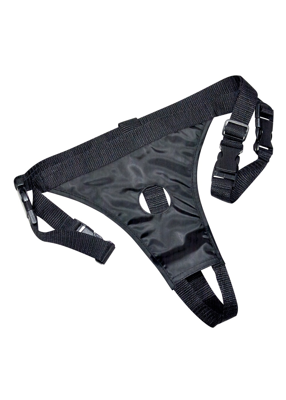 Czarny, regulowany sznurek pewnie utrzymuje podwójne dildo na miejscu