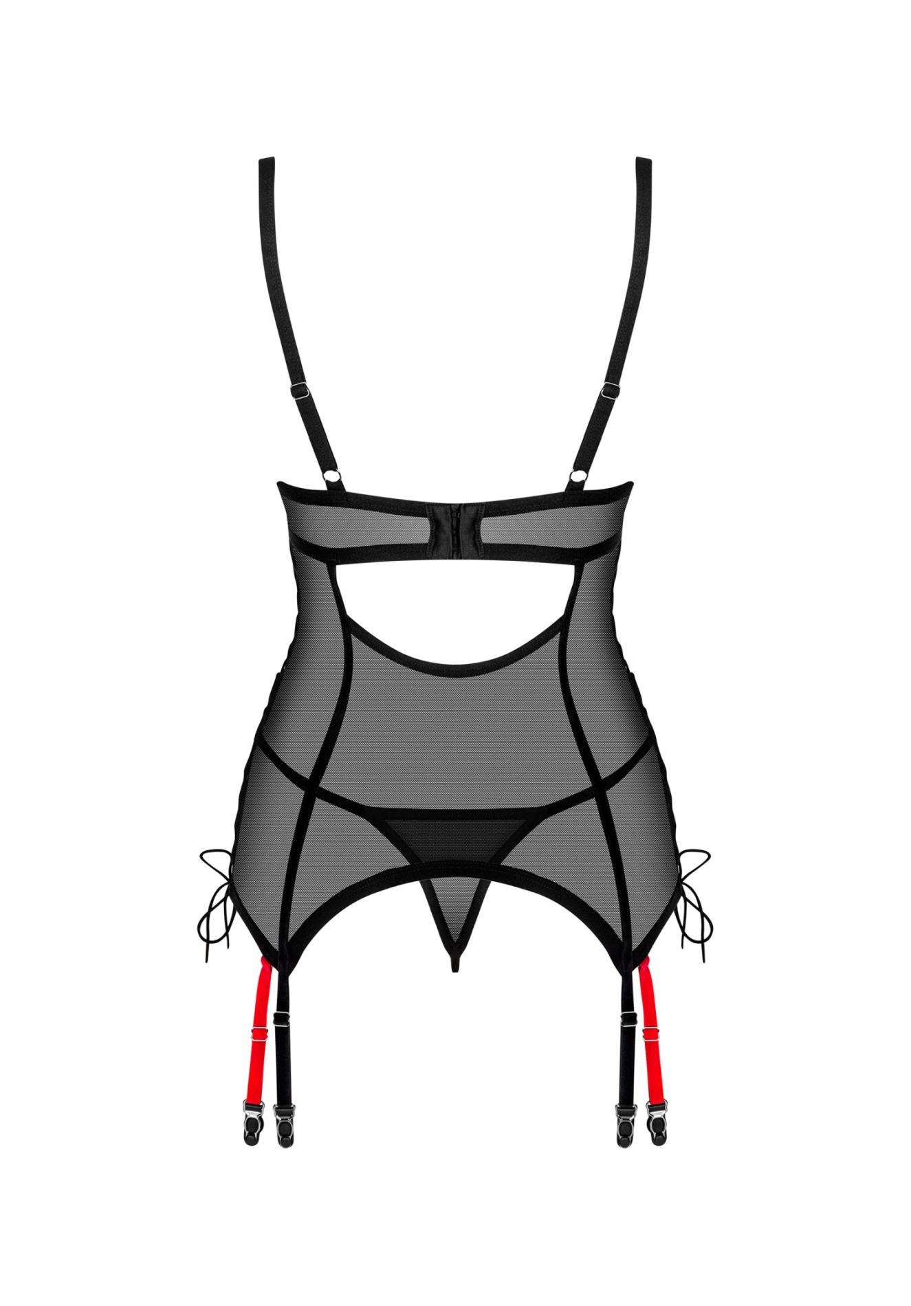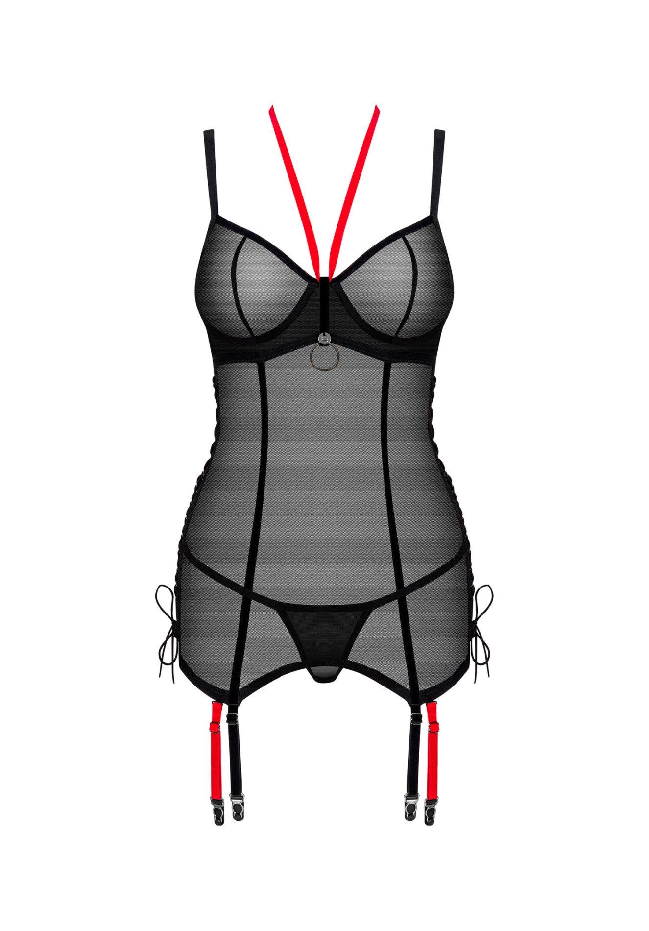 Delikatny, prześwitujący materiał w czarnym kolorze zestawiono z intensywnie czerwonymi akcentami, które z pewnością nie pozwolą oderwać od Ciebie wzroku! Zasmakuj upojnych chwil i pozwól sobie na nowe doznania