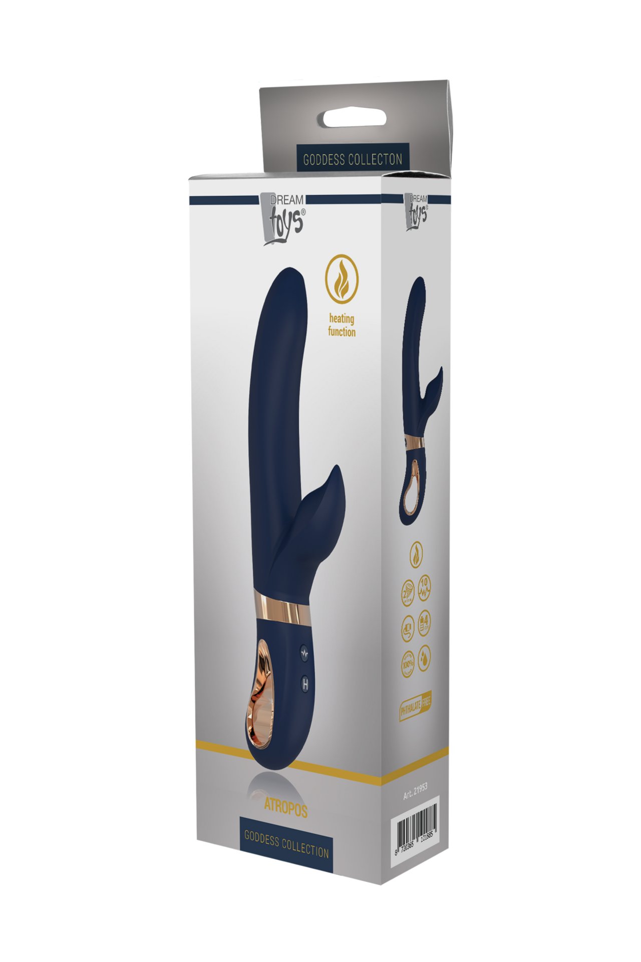 In the same style as the other Goddess Collection toys, Atropos is made of dark blue silicone with gold coloured details