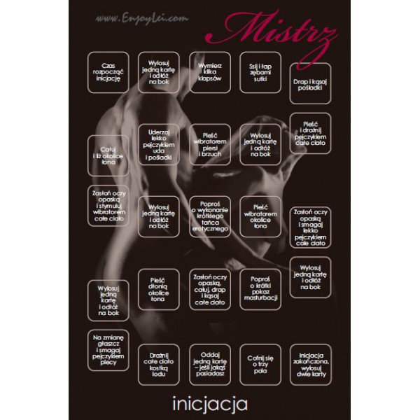 Gra „Mistrz” to nowa przełomowa formuła, która pozwala przenieść Waszą seksualną relację na kolejny poziom, zwiększyć rozkosz, powiększyć satysfakcję z życia intymnego – a nawet lepiej scementować Wasz związek…