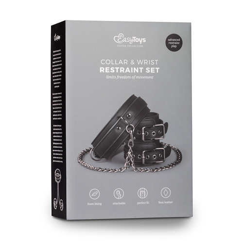 Masz kontrolę, kiedy twój partner ma na sobie ten fantastyczny zestaw niewoli! Składa się z kołnierza na szyję, połączonego z mankietami na nadgarstki, które można łatwo odłączyć od siebie za pomocą klamer