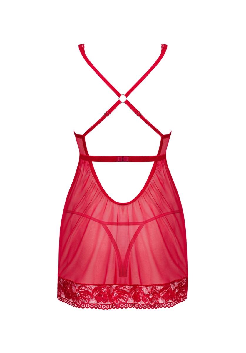 Spójrz tylko na ten prześwitujący materiał i koronkowe detale w kolorze intensywnej czerwieni! Gotowa na gorącą noc pełną namiętności?Poznaj więcej szczegółów:- babydoll i stringi w kolorze czerwieni- idealne dopasowanie dzięki regulowanym ramiączkom i kilkustopniowemu zapięciu- fiszbiny podkreślające biust- uwodzicielska koronka – przyciąga wzrok – elegancka zawieszka – ciekawy detal- przyjemny materiał zapewniający wysoki komfort (babydoll: 94% poliamid, 6% elastan