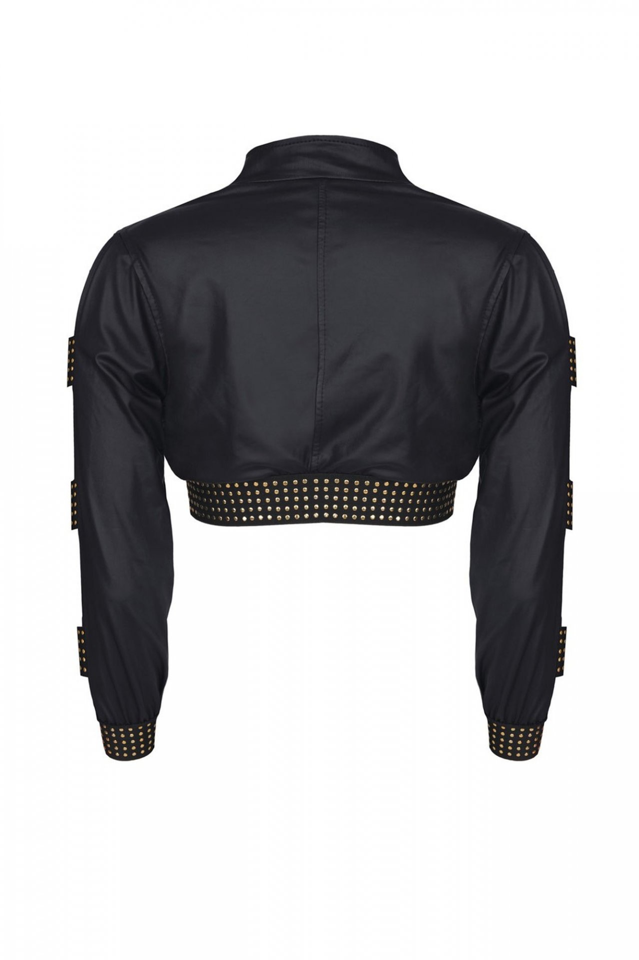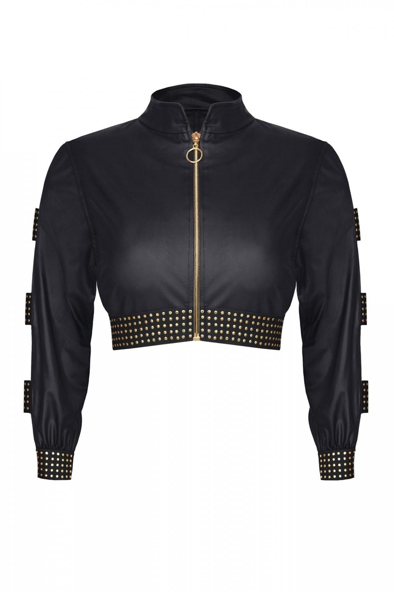 Długie rękawy posiadają ozdobne wstawki z czarnej gumki ze złotymi aplikacjami
