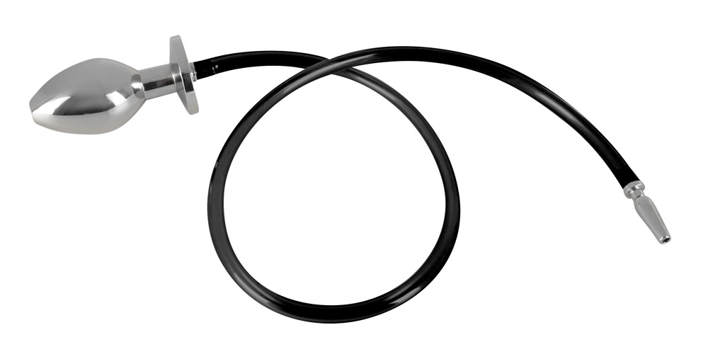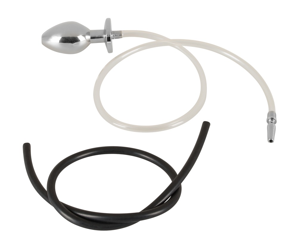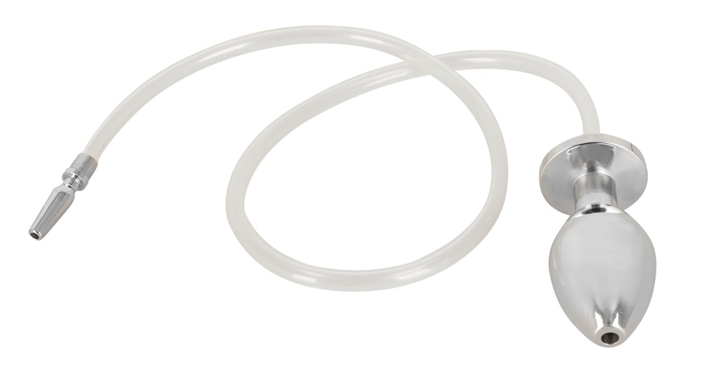 Dla koneserów i miłośników przyjemności związanych z cewką moczową i odbytem!Pusta, ciężka wtyczka analna jest podłączona do otwartej wtyczki penisa za pomocą rurki