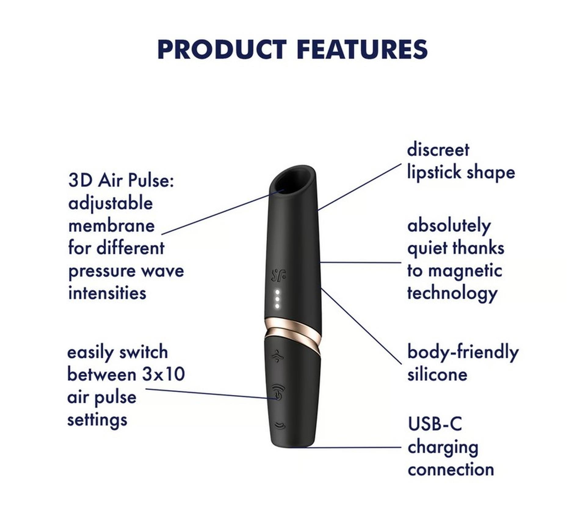 Satisfyer Perfect Kiss to idealny wybór dla każdego, kto ceni elegancję i funkcjonalność w jednym. Jego odważny, a jednocześnie stylowy design w kształcie szminki sprawia, że jest wyjątkowo dyskretny i kompaktowy. Dzięki technologii fal ciśnienia oraz ruchomej membranie, Perfect Kiss zapewnia precyzyjną stymulację, dopasowaną do Twoich potrzeb.