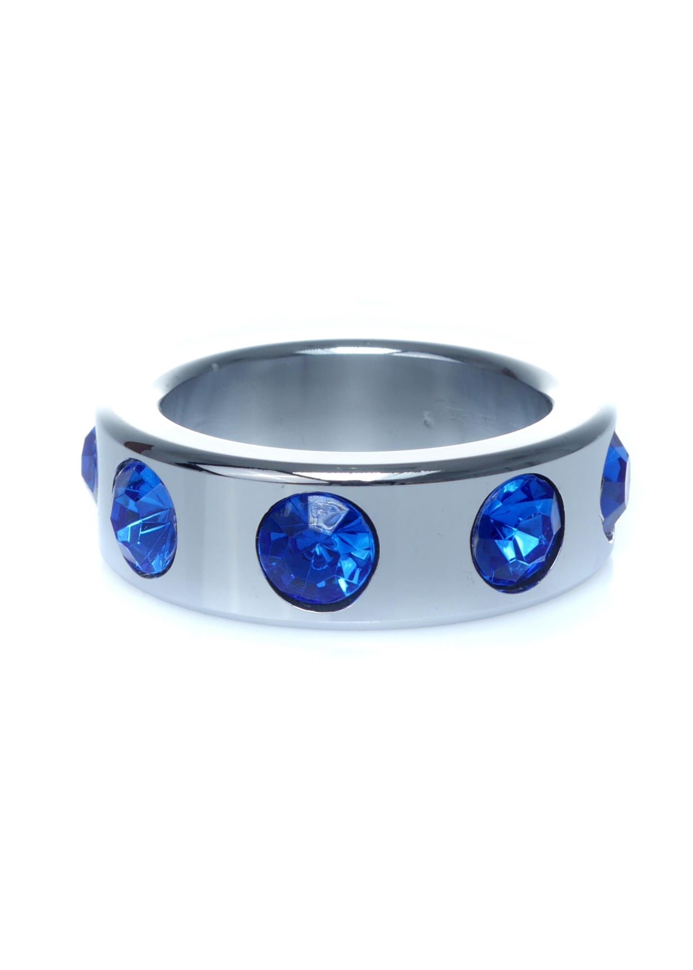 Pierścień-Metal Cock Ring with Dark Blue Diamonds Small