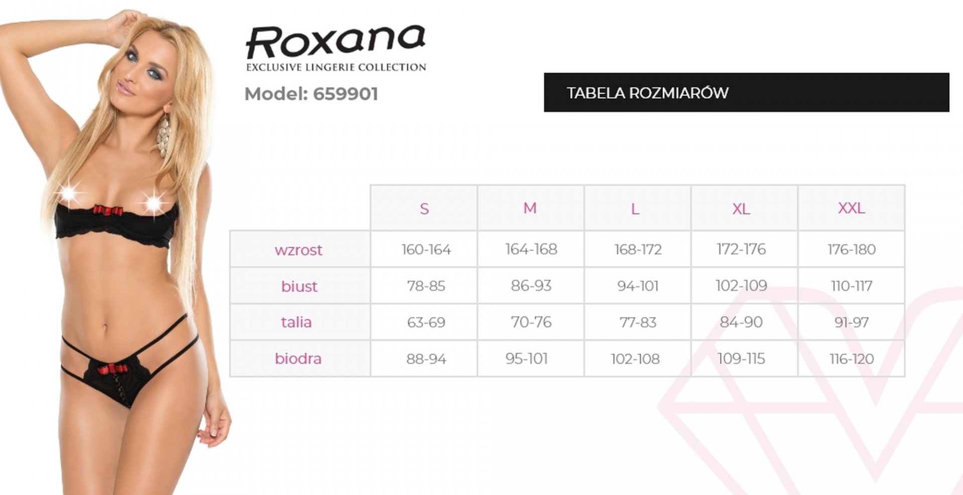 Nie boisz się odsłonić nieco swoich wdzięków, a może szukasz kompletu bielizny, który zrobi na Twoim ukochanym piorunujące wrażenie? Biustonosz i stringi DONE marki Roxana to idealny wybór na upojną noc! Komplet składa się z ultraseksownego biustonosza typu peek-a-boo oraz pięknych stringów, odsłaniających największe atuty kobiecego ciała