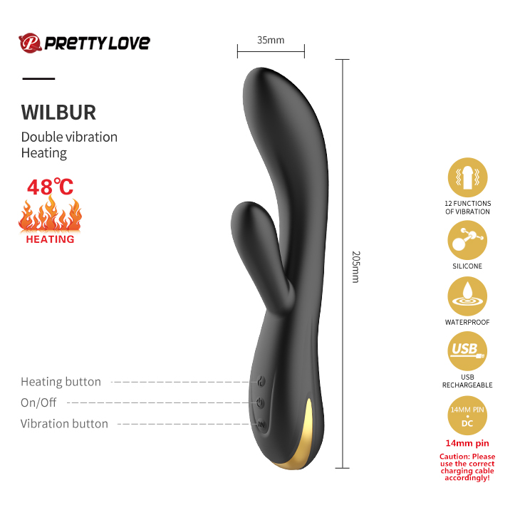 7 funkcji wibracji 5 poziomów kontroli prędkości 12 funkcji wibracji Temperatura grzania do 48 ? Podstawa ssąca Bezprzewodowy pilot zdalnego sterowania