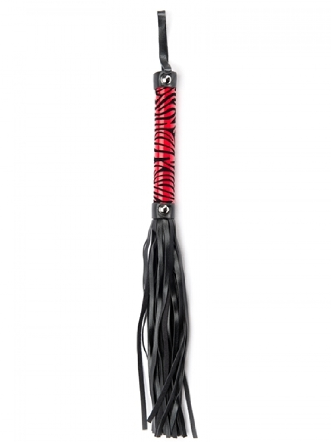 Klasyczny flogger wykonany ze skóry PU, drewna i metalu wolnego od niklu z czerwonym skrętem w kształcie lamparta