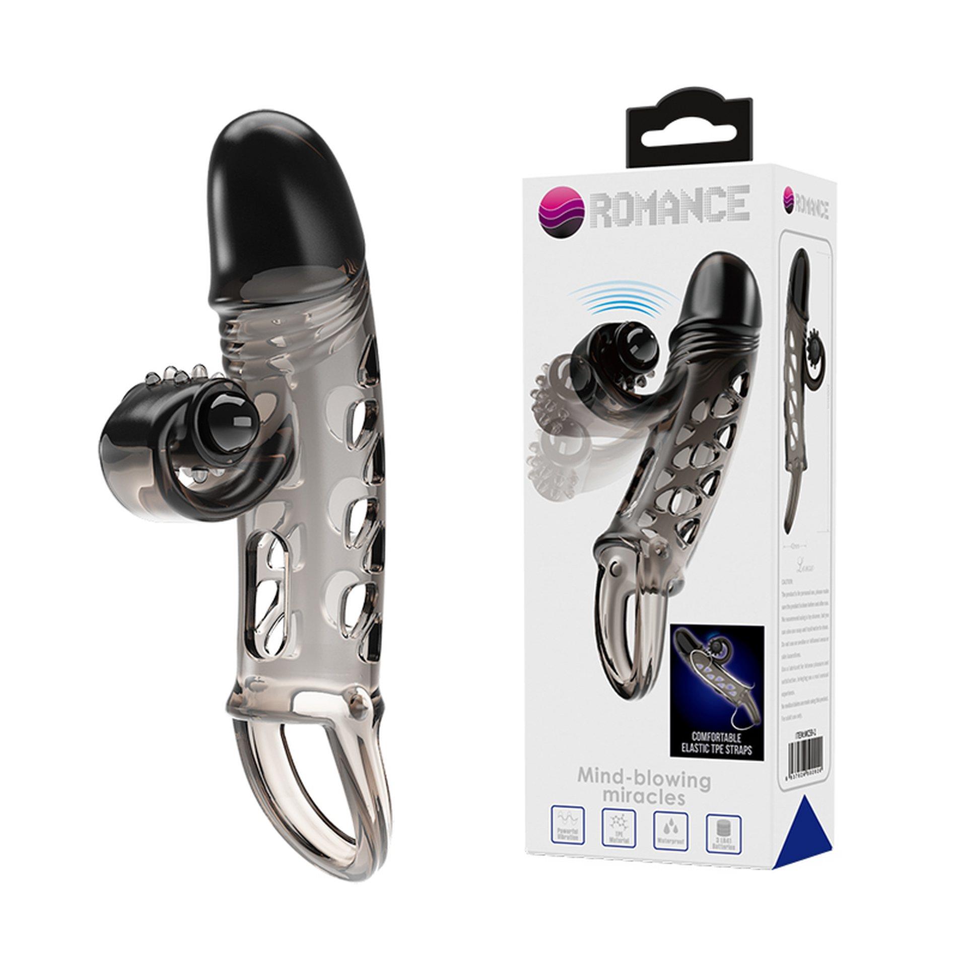 ROMANCE Penis sleeve, TPE material,vibration, battery LR41*3, Black