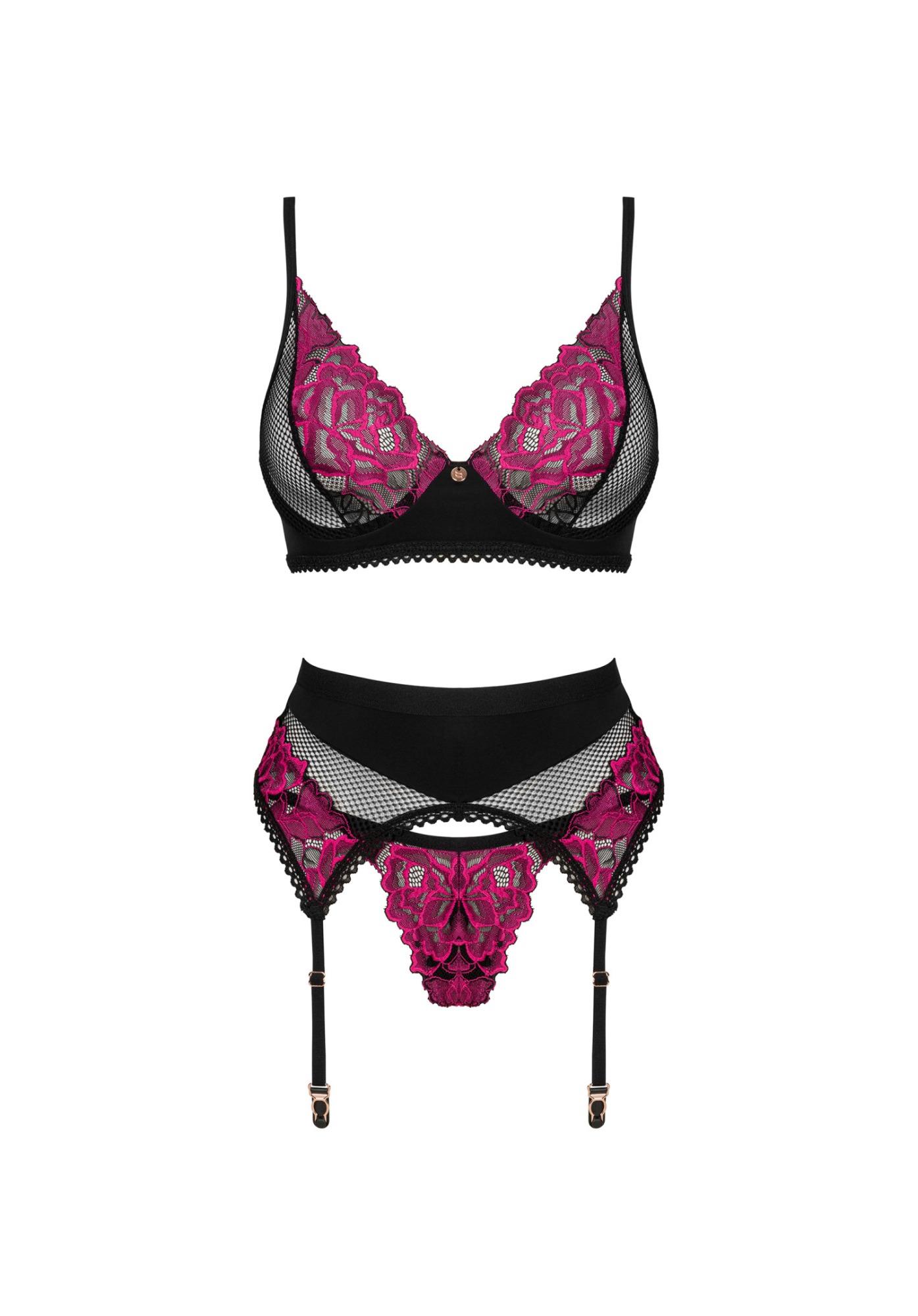 Celebruj wspólny czas lub zrób sobie wymarzony prezent i wybierz przepiękny komplet Rosenty! Poczuj, jak szaleją zmysły, gdy zakładasz stringi, biustonosz oraz nieziemski pas do pończoch ozdobione oryginalnym kwiatowym wzorem