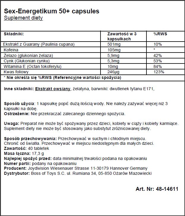 Seks-Energetikum Pokolenie 50 + zwiększa seksualną sprawność, przedłuża grę wstępną i pozwala cieszyć się takim seksem jak dawniej
