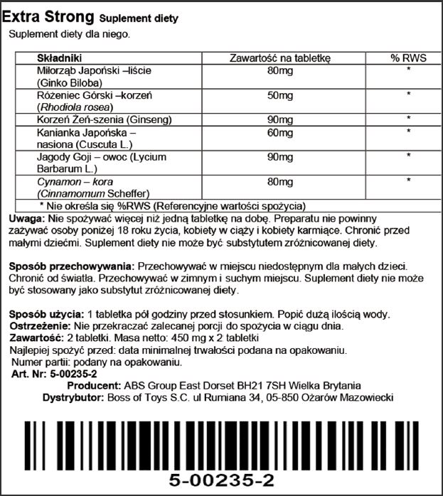 Napisz pierwszą opinię o „Supl.diety Extra Strong 2 Capsules”