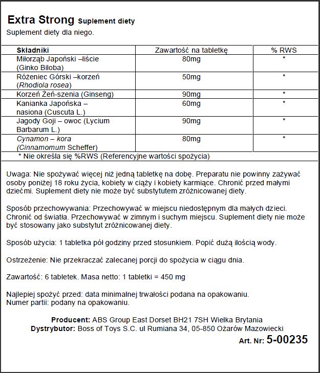 Napisz pierwszą opinię o „Supl.diety Extra Strong 6 Capsules”