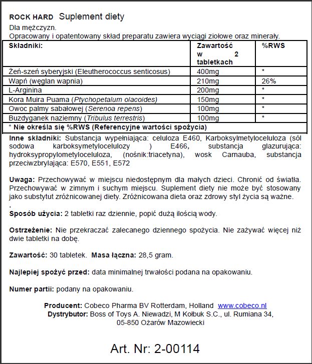Rock Hard zawiera również kilka aktywnych składników, które zwiększają siłę, pożądanie, potencję i libido