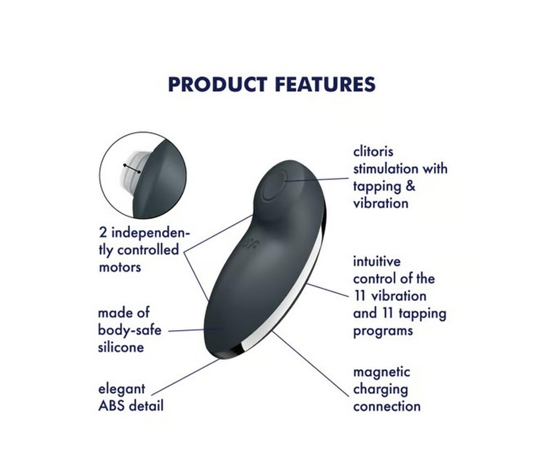 Satisfyer Tap & Climax 2 to nowoczesna technologia w służbie rozkoszy. Zabierz go ze sobą – jest kompaktowy, stylowy i gotowy do działania w dowolnym miejscu i czasie.