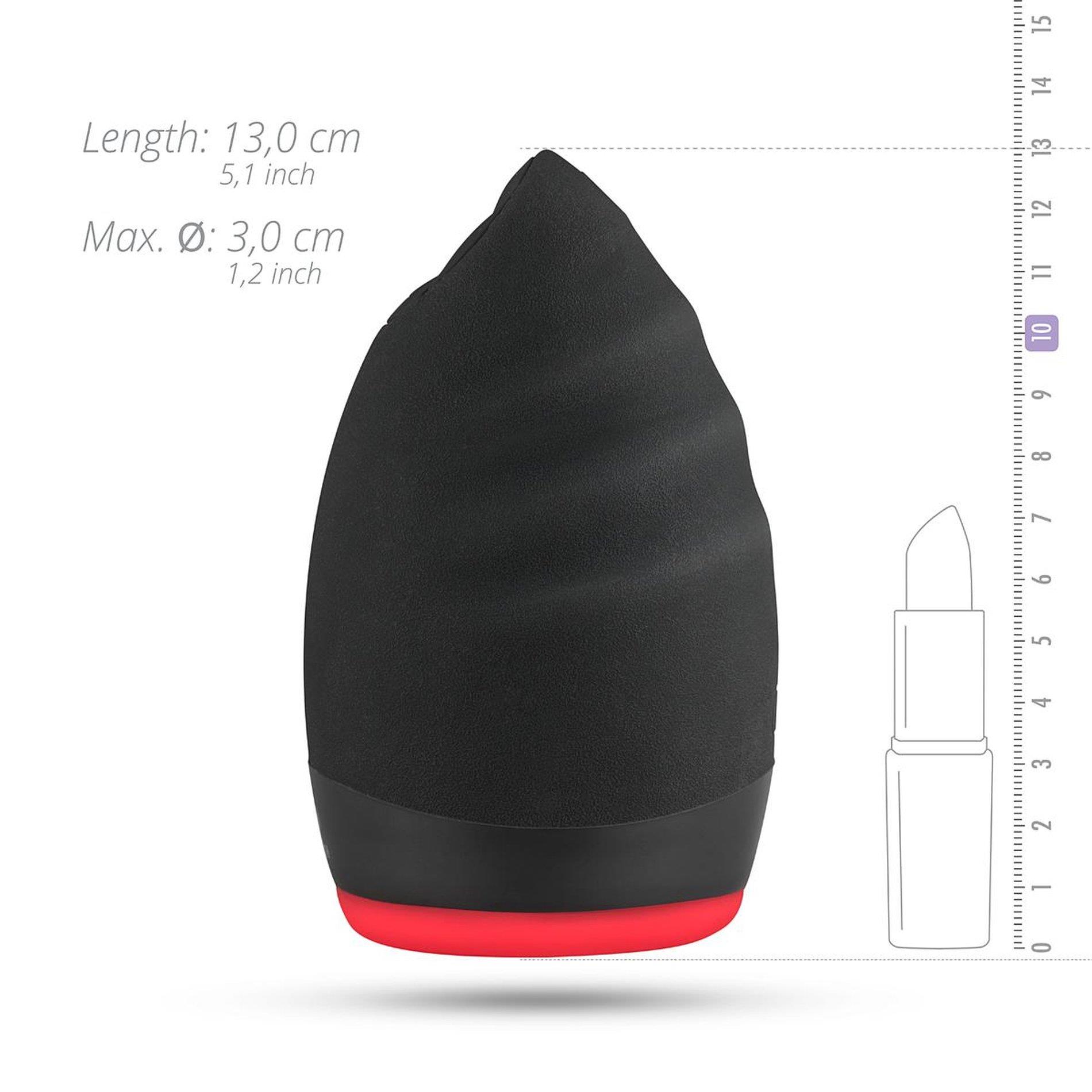 Masturbator jest wyposażony w 9 ustawień wibracji: 6 wzorów i 3 prędkości