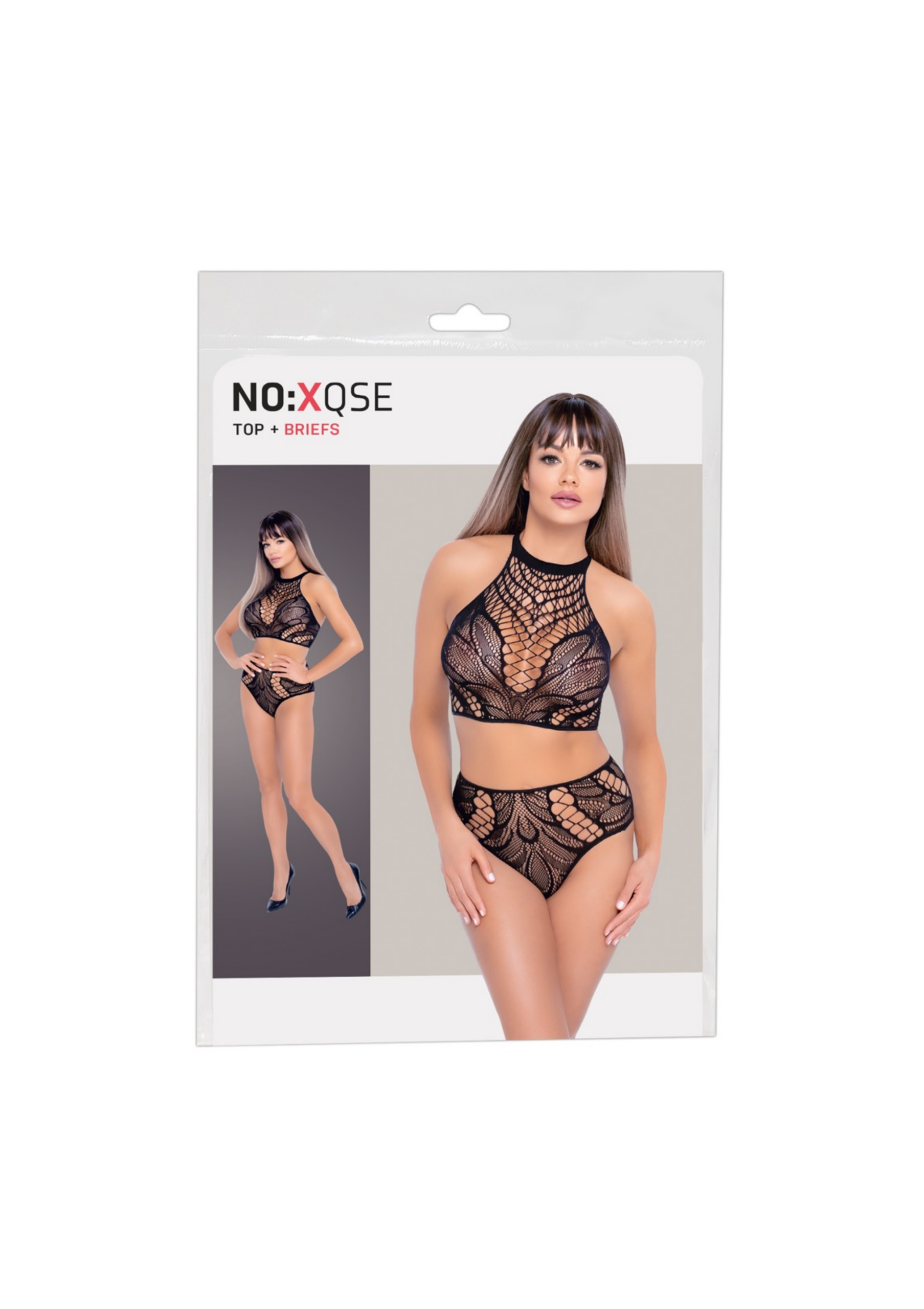 Stylowy dwuczęściowy!Top i figi bez krocza marki NO:XQSE o różnych strukturach siatki