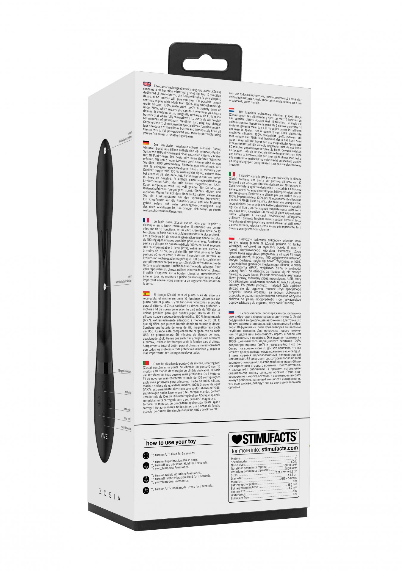 Klasyczny ładowany silikonowy wibrator ze stymulacją punktu G (Zosia) posiada 10 funkcji wibrującej końcówki do stymulacji punktu G oraz 10 funkcji dedykowanego wibratora łechtaczki